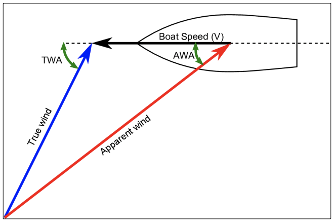 Additionally, the concept and understanding of apparent wind is fundamental as it is the wind that sailors feel and the boat’s instruments sense; it is a composite of the true wind (TWA) and the wind created by the boat's own forward motion (AWA) (Figure 1). As the boat accelerates, the apparent wind increases in velocity and veers increasingly forward than the true wind, which necessitates continuous adjustments to the sail's orientation and shape. It is this dynamic interplay between a variable true wind and the vessel's induced wind that determines the apparent wind direction and force, thereby influencing the sail's optimum trim and the boat's course. Mastery of apparent wind is what distinguishes champion sailors, allowing them to extract maximum energy from the wind, propelling the boat efficiently at various angles and in varying conditions.